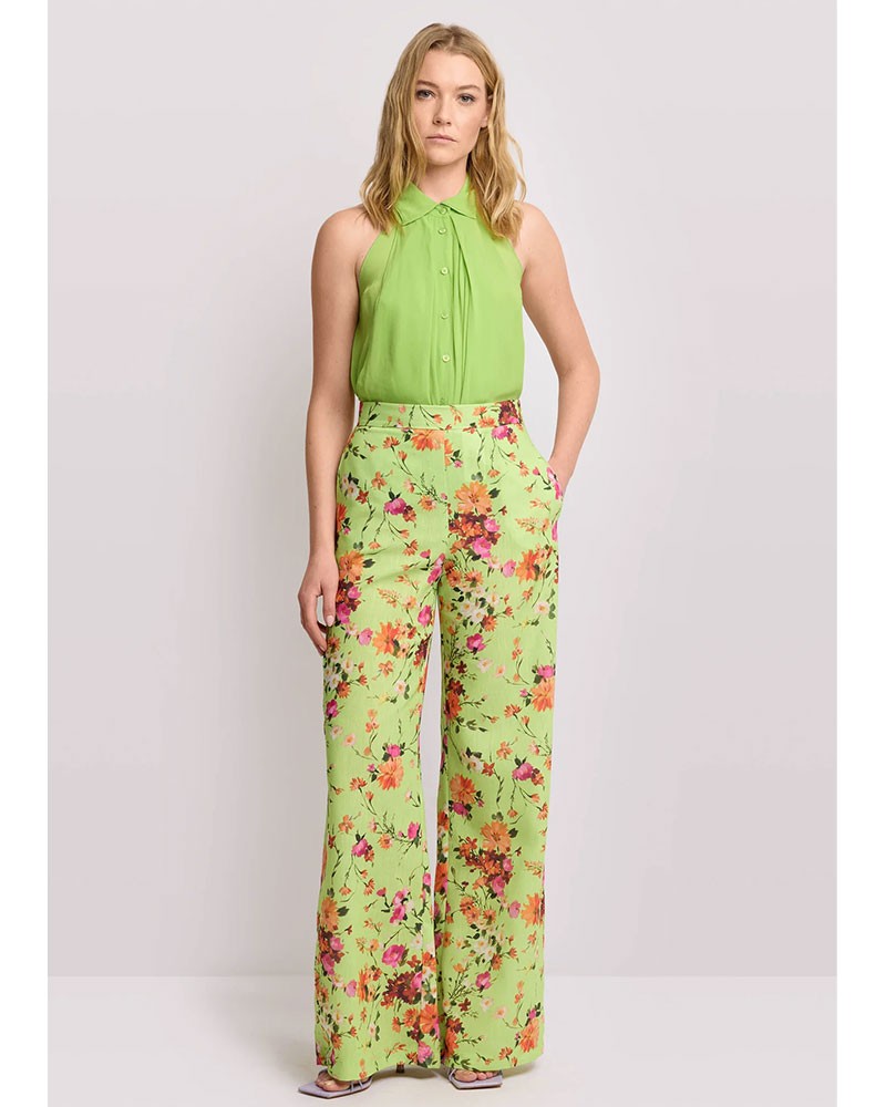 Palazzo-Hose aus der Soft Elegance Capsule Collection mit weitem, fließendem Schnitt, der die Bewegungsfreiheit optimal nutzt. Der dezente Blumendruck verleiht ihr eine romantische und zarte Note, während der strukturierte, hohe Bund die Figur elegant betont. Liebevoll verarbeitet, besticht die Hose durch seitliche Leistentaschen und Abnäher im Rücken, die die Silhouette formen. Ein luftig-elegantes Kleidungsstück, perfekt für Feierlichkeiten, Hochzeiten und besondere Anlässe.