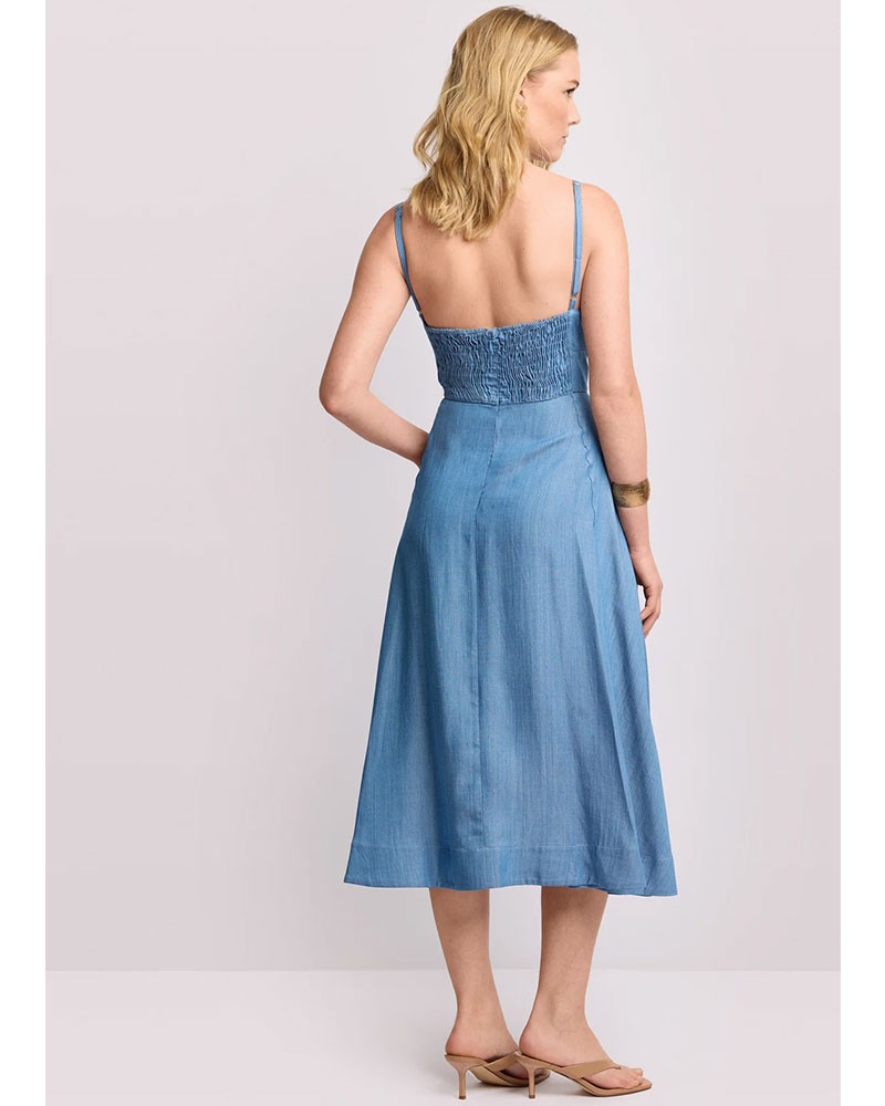 Das A-Linien-Kleid KOCCA besticht durch seine fließende, feminine Silhouette und die verstellbaren, schmalen Träger. Der V-Ausschnitt und die konturierten Nähte betonen das Dekolleté, während der Taillenbund die Figur dezent akzentuiert. Der elastische Einsatz im Rücken sorgt für optimalen Tragekomfort und eine bequeme Passform. Der weite Rock mit Seitentaschen verleiht dem Kleid Praktikabilität und Leichtigkeit. Ein vielseitiges und raffiniertes Kleidungsstück, ideal für lässig-elegante Looks.
