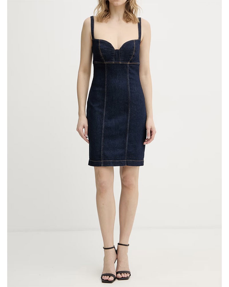 The Guess Spring/Summer collection features this short dress made of dark denim. The sweetheart neckline and silhouette make it particularly sensual and sophisticated.