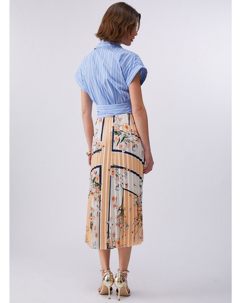 LIU JO Pleated midi dress with flowers and stripes