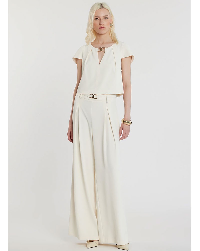 The Relish collection features this long-sleeved, cropped blouse with a teardrop and logo loop, a sophisticated and luminous design. The teardrop adds elegance, while the logo lends modernity and couture charm.