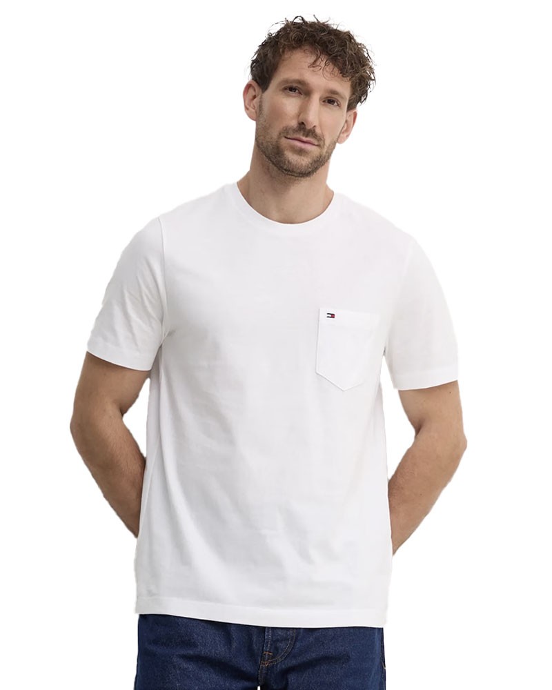 Esta camiseta de punto de algodón puro, con su clásico cuello redondo y práctico bolsillo en el pecho, es una prenda básica y versátil por excelencia.