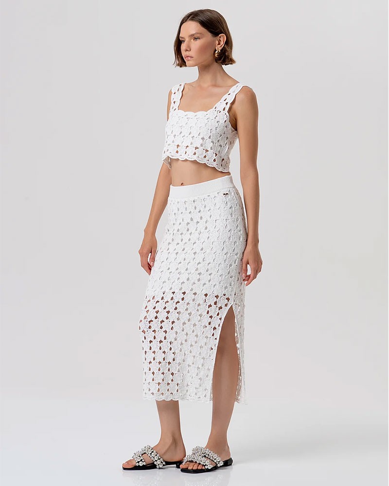 Falda midi lápiz de corte ajustado de Fracomina, confeccionada en punto para un ajuste ceñido y cómodo. Con cintura alta que favorece la figura, presenta una abertura trasera para mayor libertad de movimiento y un toque de sofisticación femenina. Perfecta para looks elegantes y versátiles.