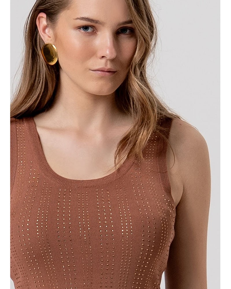 FRACOMINA Camiseta sin mangas acanalada con pedrería