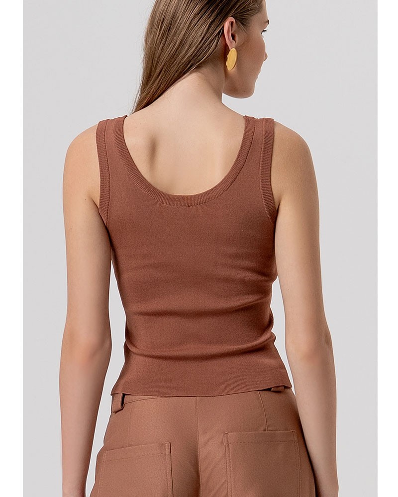 Top de punto sin mangas de corte ajustado con un diseño sencillo y entallado que favorece la figura. El cuello redondo le aporta un toque clásico y versátil, mientras que los brillantes diamantes de imitación le dan un detalle femenino y deslumbrante, perfecto para realzar cualquier look, desde informal hasta elegante.