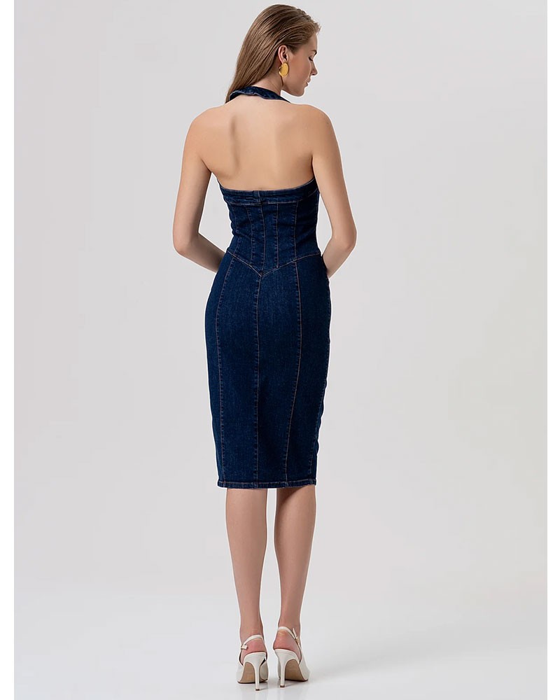 El vestido midi ajustado de Fracomina está confeccionado en denim lavado a la piedra para un look moderno y atrevido. Su diseño entallado favorece la figura, mientras que el escote cuadrado le aporta un toque contemporáneo y femenino. La cremallera metálica central añade carácter y practicidad, convirtiéndose en un detalle distintivo. La espalda descubierta completa el vestido con un toque atrevido y sensual, perfecto para looks versátiles de día y de noche.