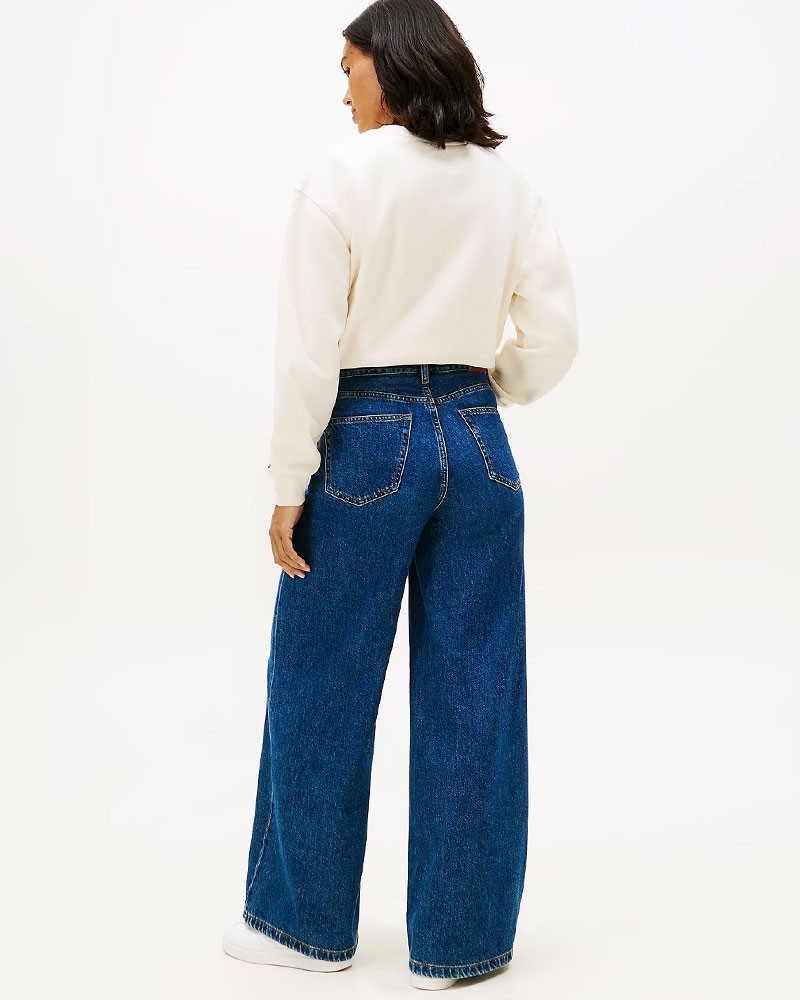 Craquez pour le look vintage de ce jean en denim rigide, à la coupe large et à la taille haute flatteuse. Il est doté de cinq poches, d'une fermeture éclair et d'un bouton, ainsi que du logo Tommy Hilfiger brodé sur la poche arrière.