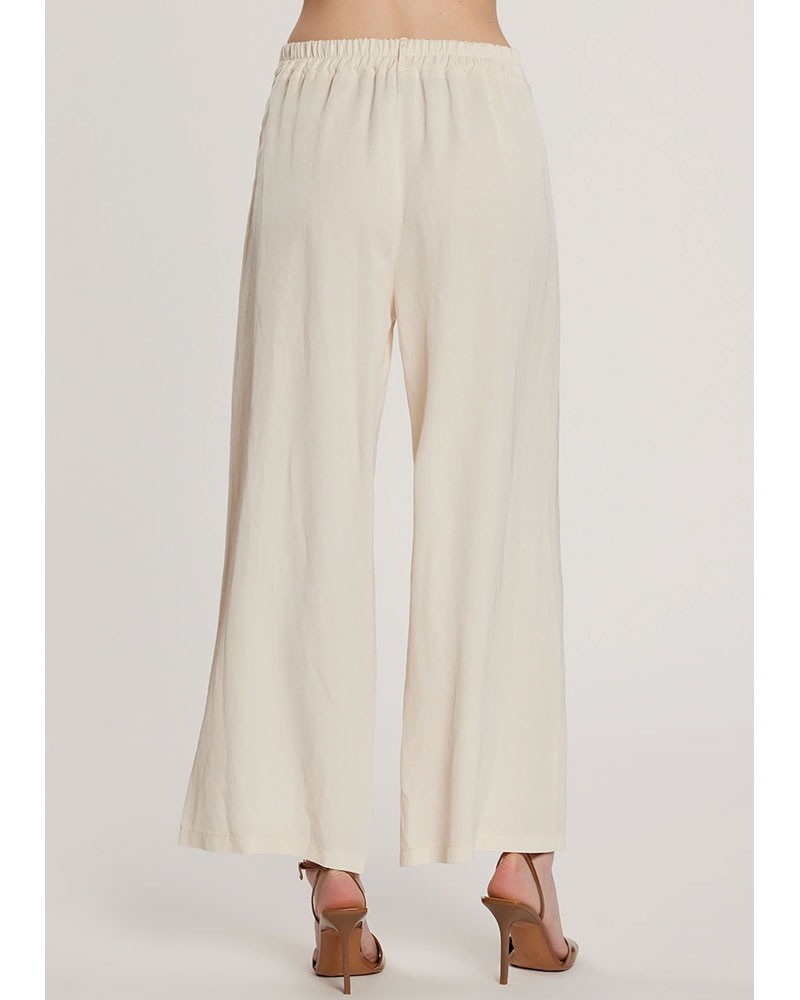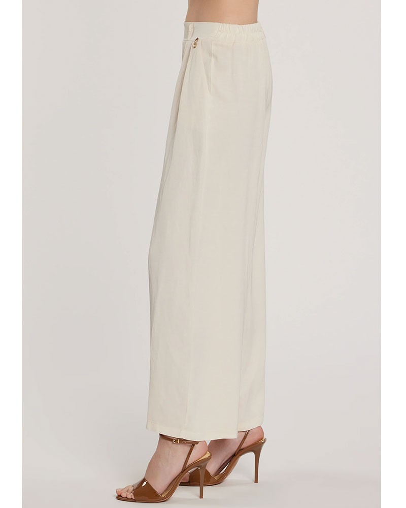 Pantalon taille haute Patrice à effet texturé, ceinture élastiquée, poches françaises et plis, pour un style sophistiqué et confortable. Les plis structurent la silhouette, tandis que la douceur et l'élasticité du tissu assurent un ajustement parfait, idéal pour des tenues chics de jour comme de soirée.