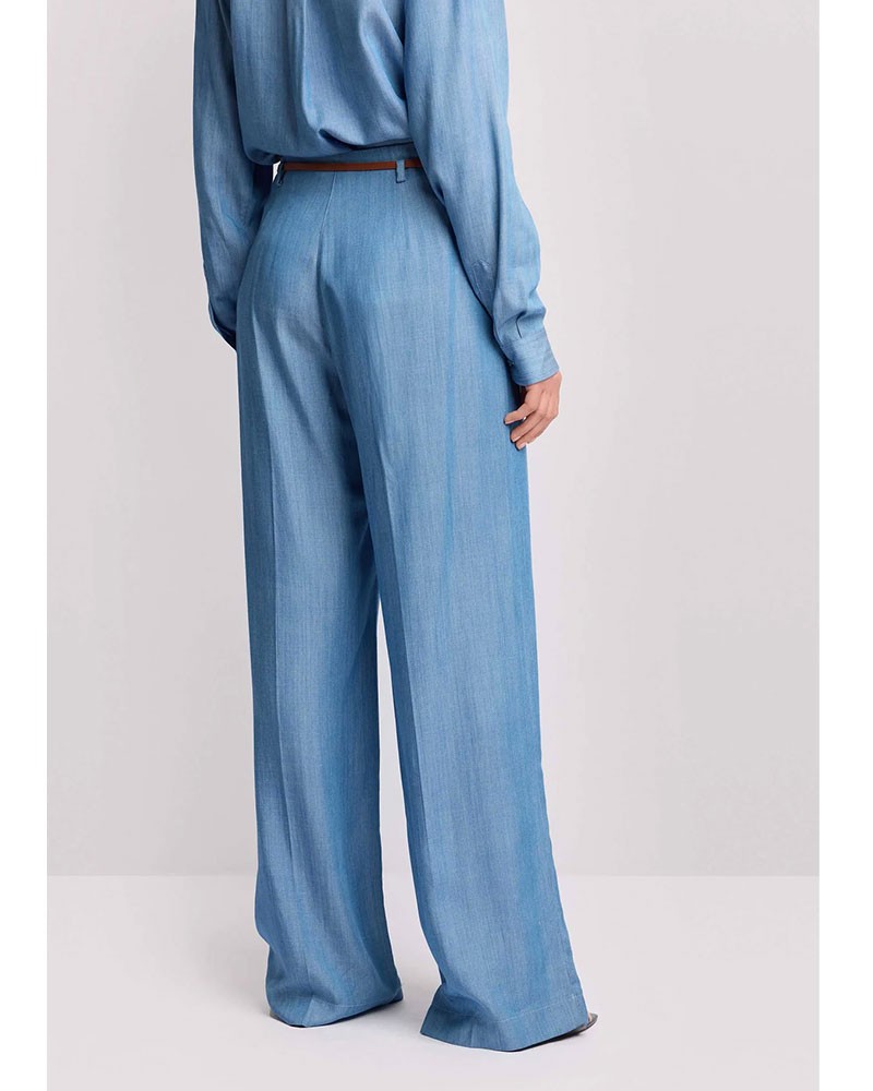 Pantalon palazzo KOCCA Metel, à la silhouette élégante et contemporaine, avec des jambes extra-larges et fluides et des volumes souples qui épousent vos mouvements. La taille haute structurée est soulignée par une fine ceinture qui la définit avec une discrétion raffinée. Des détails tailleur, tels que les fausses poches avant et le pli marqué, apportent une touche sophistiquée et élégante.