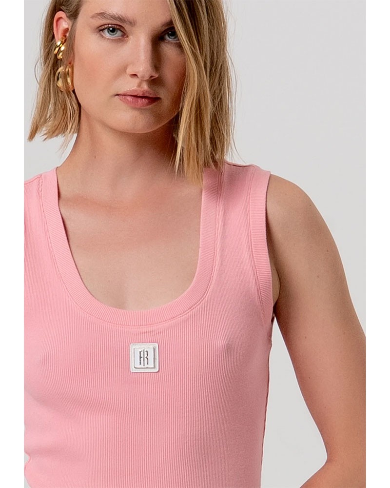 Débardeur Fracomina au design simple et féminin, confectionné en tissu côtelé qui flatte la silhouette. Ce modèle présente une encolure arrondie et large ainsi que de larges bretelles pour un confort optimal et une coupe ajustée. Le logo sur le devant apporte une touche distinctive et moderne. Parfait à porter seul ou comme base pour des looks superposés, c'est une pièce polyvalente idéale pour des tenues décontractées et contemporaines.