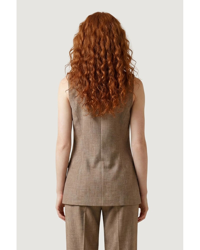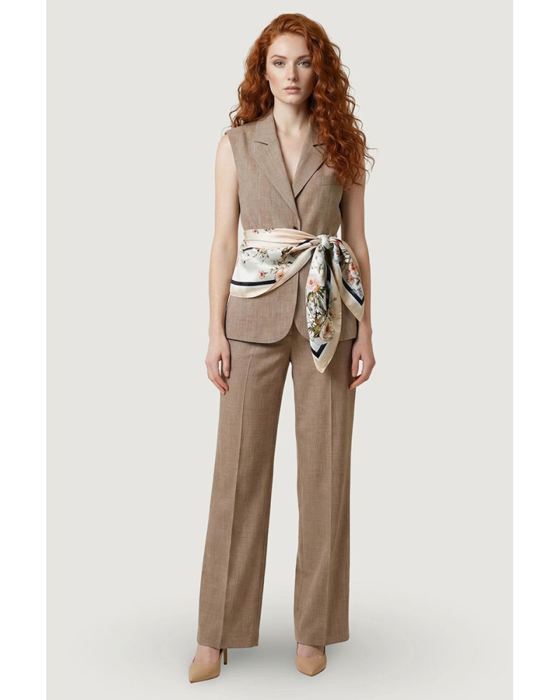Ce gilet incarne un équilibre harmonieux entre élégance contemporaine et confort sur mesure. Sa coupe masculine, avec ses revers classiques et son absence de manches, lui confère une allure sophistiquée et moderne, idéale pour le bureau, les événements formels ou les occasions spéciales. L'écharpe nouée à la taille apporte une touche romantique et féminine, sublimant délicatement la silhouette.