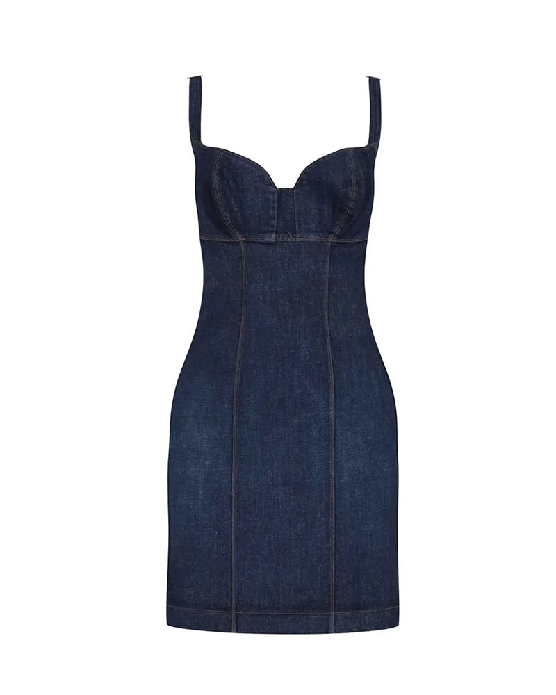 La collection printemps/été de Guess présente cette robe courte en denim foncé. Son décolleté en cœur et sa silhouette lui confèrent une allure particulièrement sensuelle et sophistiquée.