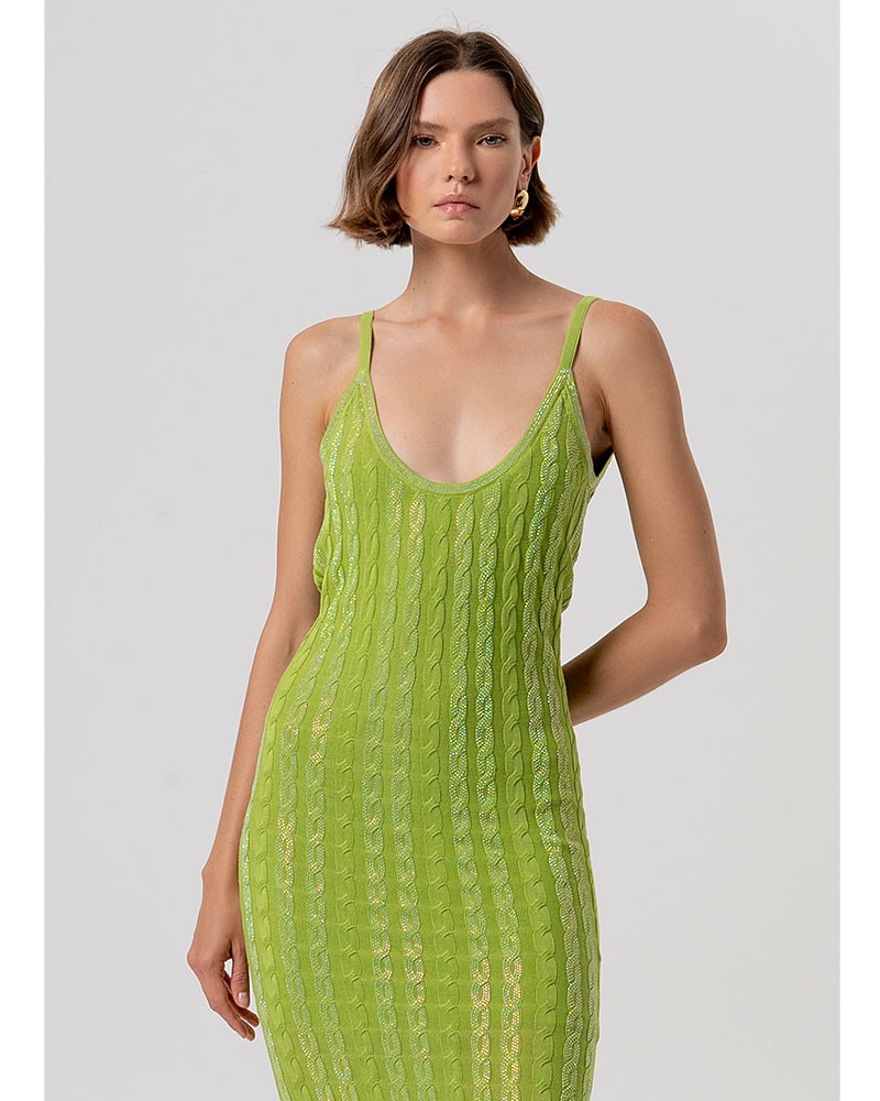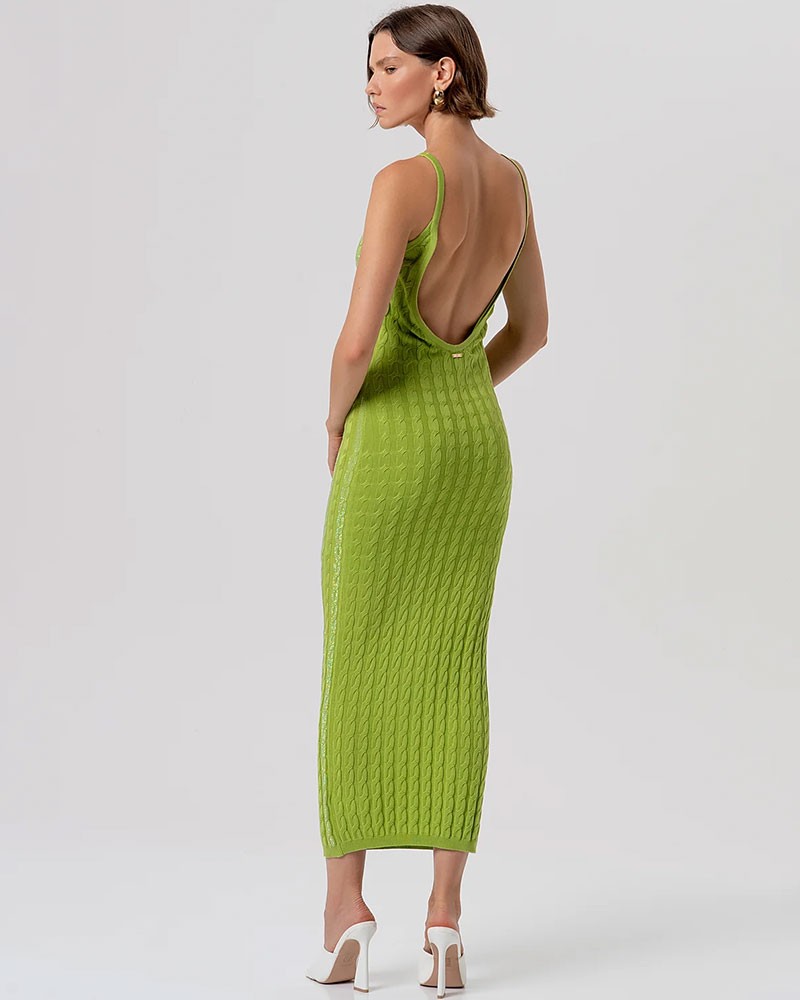Abito Fracomina dal design femminile e avvolgente, realizzato in maglia con raffinata lavorazione a punto treccia. Il modello slim valorizza la silhouette, mentre la lunghezza midi dona eleganza e versatilità. Caratterizzato da uno scollo profondo che esalta il décolleté e da sottili bretelle, è perfetto per creare look sofisticati e contemporanei, ideali sia per il giorno che per la sera.