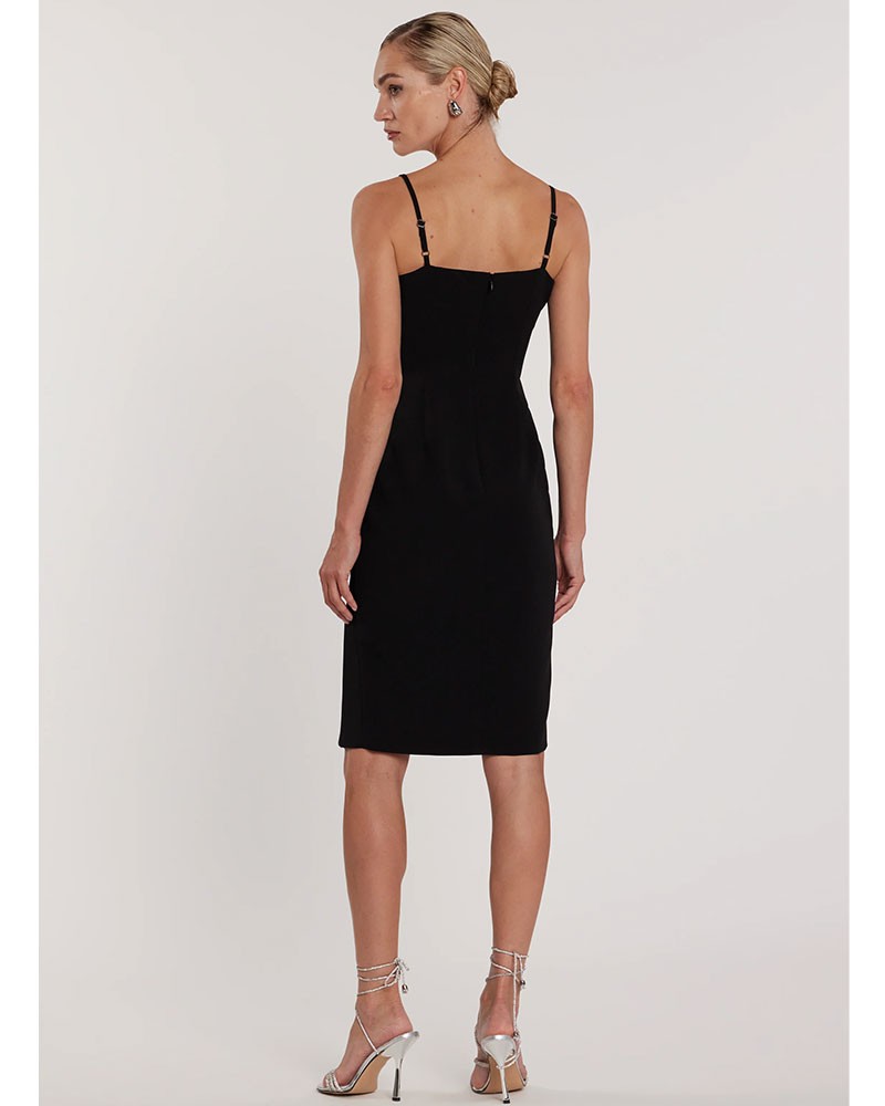 Pat è un abito midi con spacco frontale e fiocchi impreziositi da strass, un capo elegante e raffinato che valorizza la silhouette con armonia. Lo spacco frontale dona sensualità discreta, mentre i fiocchi in strass catturano la luce con movimento. Ideale per eventi serali, cocktail o occasioni speciali, regala femminilità e un allure sofisticato senza tempo.