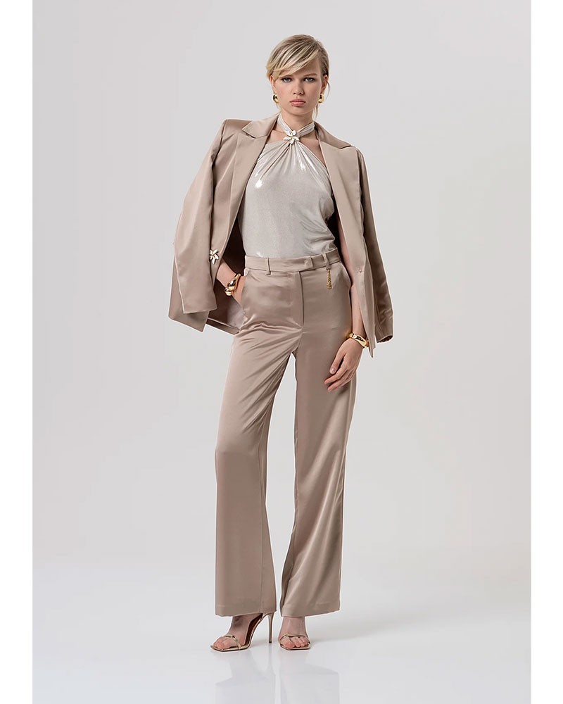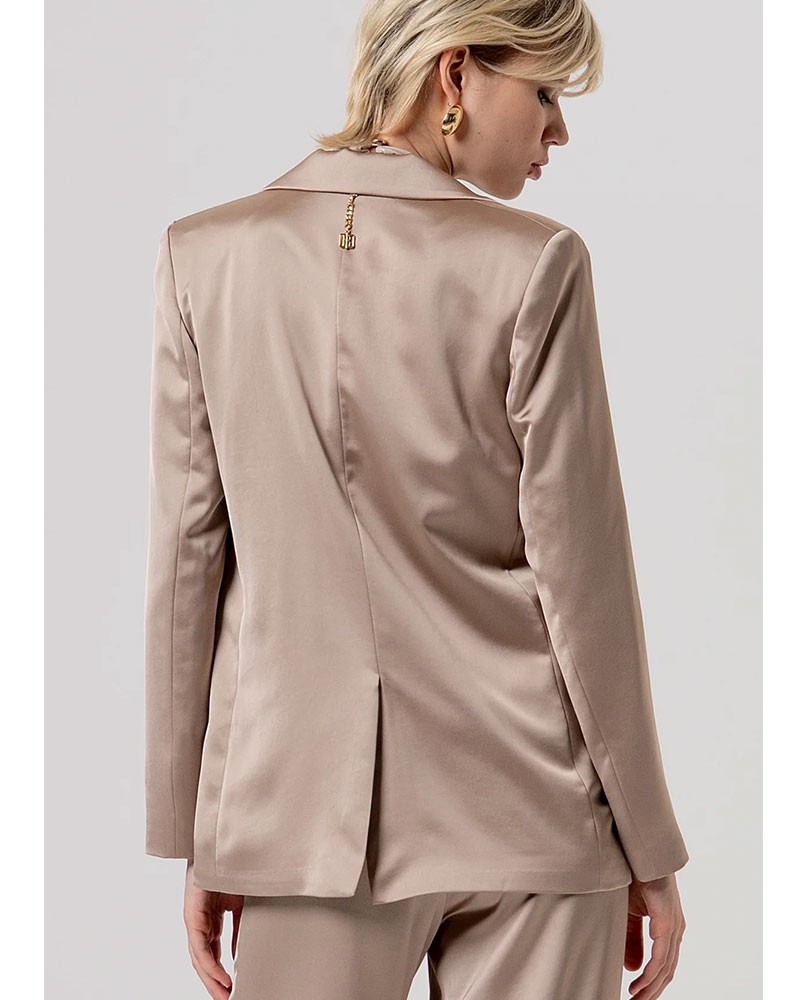 Blazer Fracomina dal taglio oversized, realizzato in raso luminoso che dona un’eleganza contemporanea. Il modello monopetto presenta revers classico e chiusura con bottone gioiello, dettaglio raffinato che impreziosisce il capo. Completano il design le pattine laterali e le maniche lunghe. Perfetto per creare look sofisticati e di tendenza, sia per il giorno che per la sera.