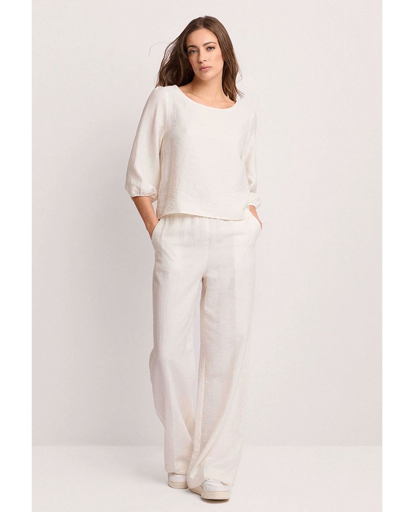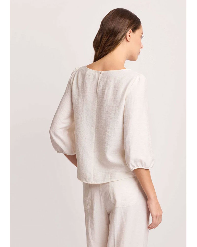 Blusa KOCCA della capsule Pure Verve, caratterizzata da uno scollo tondo e da linee pulite ed essenziali che ne esaltano la raffinatezza. Le maniche a tre quarti sono rifinite con delicati polsini elasticizzati che creano un leggero volume balloon, aggiungendo un tocco femminile e contemporaneo. Sul retro, la chiusura a goccia con piccolo bottone coordinato completa il design con discreta eleganza. Un capo versatile e sofisticato, perfetto per valorizzare outfit quotidiani o professionali con naturalezza.